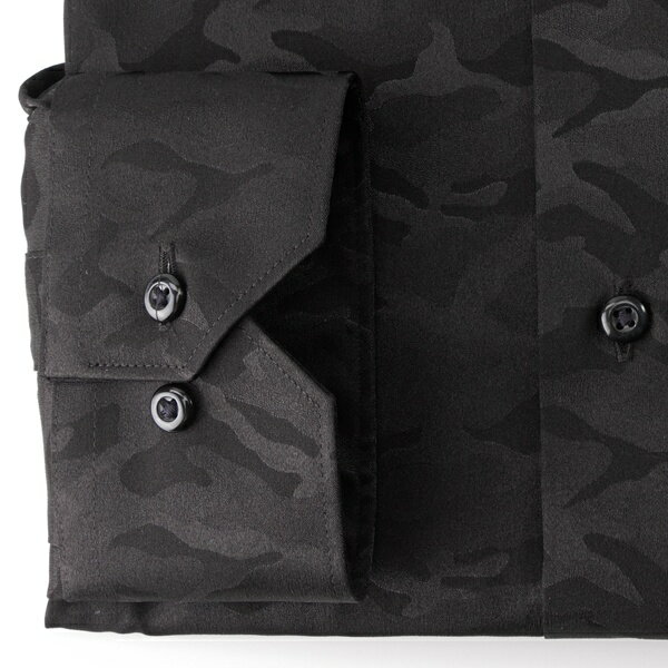 【衿型】レギュラーカラー【織り・柄】ジャカード・カモフラージュポリエステルサテン長袖ドレスシャツ。
