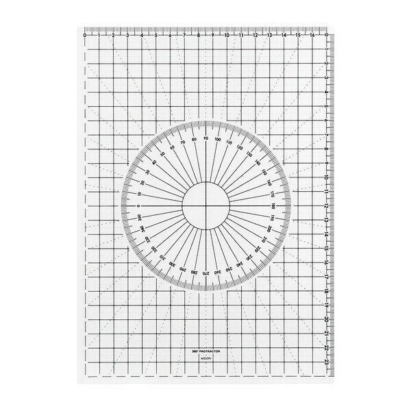 10度毎のメモリが下敷きの端まで表記されているため、大きな建物や風景の角度なども測りやすいメモリデザインです。