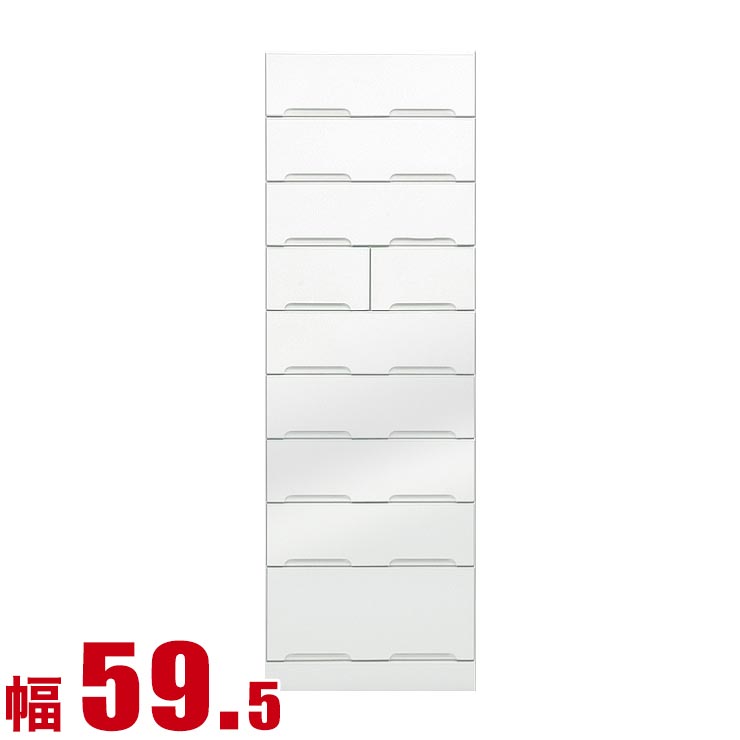 タンス チェスト 木製 完成品 収納 モダン モナコ タワーチェスト 幅79.5cm 9段 鏡面ホワイト 完成品 日本製 送料無料